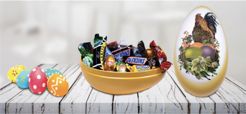 I påskeegget i metall, får du ca 400g smågodt fra varierte produsenter som: